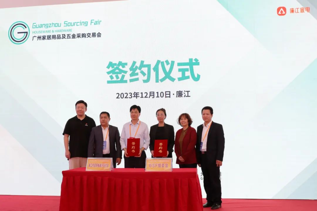 会上,GSF组委会与廉江市家用电器行业协会就组织廉江当地品牌企业参与亮相2024年4月、10月的广州家居用品及五金采购交易会一事达成战略合作,在廉江市人民政府副市长林中权、廉江市科工贸和信息化局局长刘敬梅、广东光合作用文化发展有限公司董事长鲁晓昆、广州市光合作用展览有限公司董事长张南的共同见证下,廉江市家用电器行业协会会长陆锡章、广州光合作用展览有限公司总经理林珺代表双方签署项目合作协议,期望通过GSF专业商贸展览平台,协助企业精准对接买家。