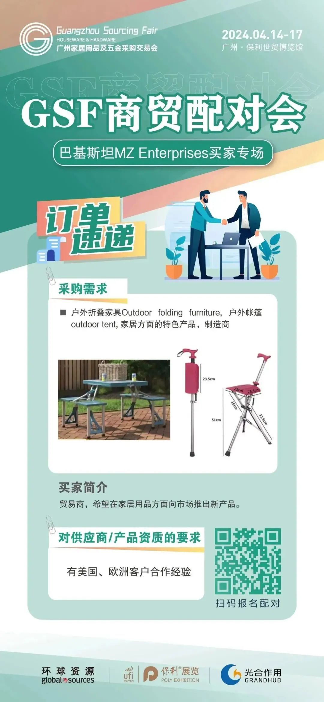 GSF线上商贸配对会将持续举办,永不落幕,错过此次商贸配对机会的企业,请不要气馁哦!目前,仍有来自英国、苏丹、加纳等地的买家正在接受配对报名,如若有生产五金紧固件等五金用具,以及平底锅、电夹板、户外帐篷等家居日用品的企业务必抓紧时间报名!别再错过!