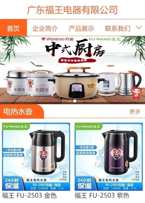 广东福王电器有限公司创建于2009年,专业从事电热水壶、电饭煲、商用鼓型锅的发、生产与销售。公司位于交通便利,产业集群优势强大的“中国小家电生产基地”——广东省廉江市,经过不懈努力和求实探索,拥有独立的科研中心、模具开发中心、多条现代化生产线、多套检测设备,公司本着高标准、稳定品质、高效率、高品味的发展道路,优化产业结构,为用户打造出安全、健康、时尚的家用电产品秉承“佳品盛世,诚信为源”的理念,开拓创新,务实稳进,实施生产规模化、创新化。