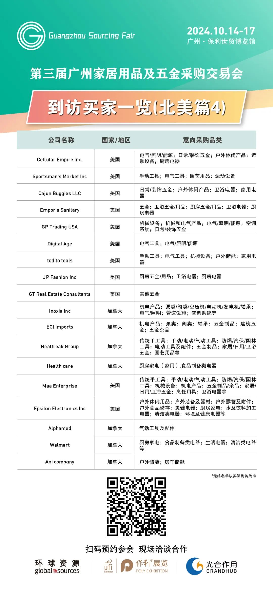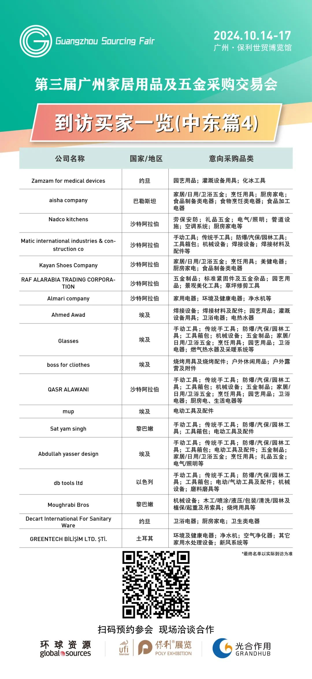 本期,小编为您带来第四波的到访买家名单及最新采购需求。现场商贸配对会报名热度持续上升,海量订单已锁定GSF!速速扫码对接买家,一键斩获海量订单!