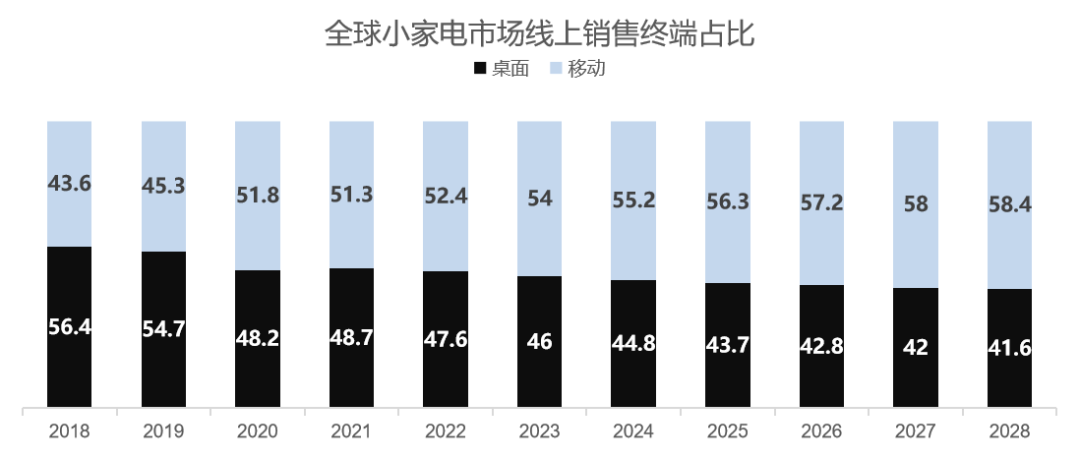 2024年,全球小家电市场的电商收入预计将达到795.9亿美元,到2029年小家电电商市场规模预计将增至1256亿美元。同时,预计到2029年该市场的用户基数将增长至13.78亿。除此之外,在线销售平台的不断崛起,把家电产品通过直播、短视频等方式更直观展现给消费者,打破地域限制,而内容种草与社交分享等方式有助于品牌口碑的传播,进一步激发消费者的购买欲望,推动产品销量稳步提升。
