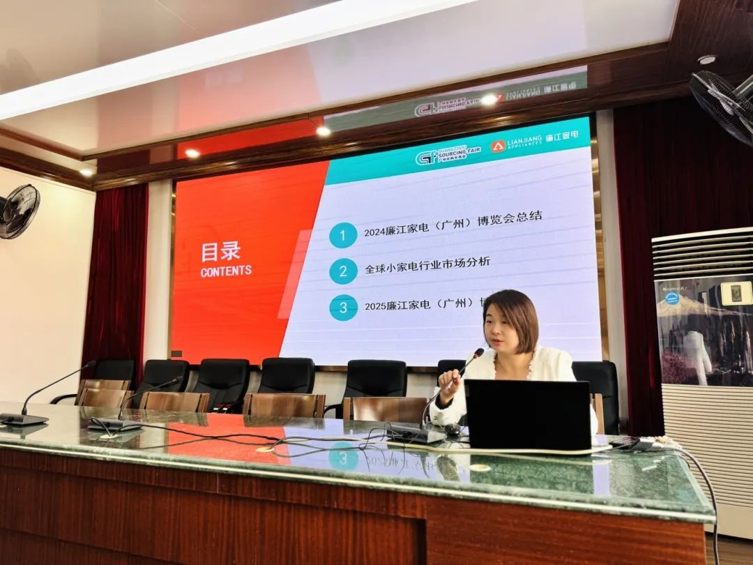 在全球小家电行业市场分析的环节,基于GSF权威的市场研究报告,现场企业代表更加深入了解了全球小家电市场的整体概况、行业趋势以及热门地区分布。报告指出,随着消费者对生活品质的追求日益提升,小家电市场呈现出快速增长的态势,智能化、健康化、个性化成为行业发展的新趋势。此外还详细介绍了2025廉江家电春季(广州)博览会的筹备情况、展位规划、展商线上平台完善及应用、展商推广和服务计划以及展商线上商贸配对会流程等关键环节。
